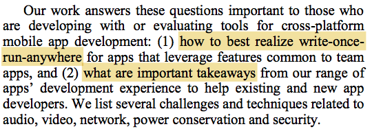 The paper shows how to realize write-once-run-anywhere for such apps, and what are important lessons learned from our experience.