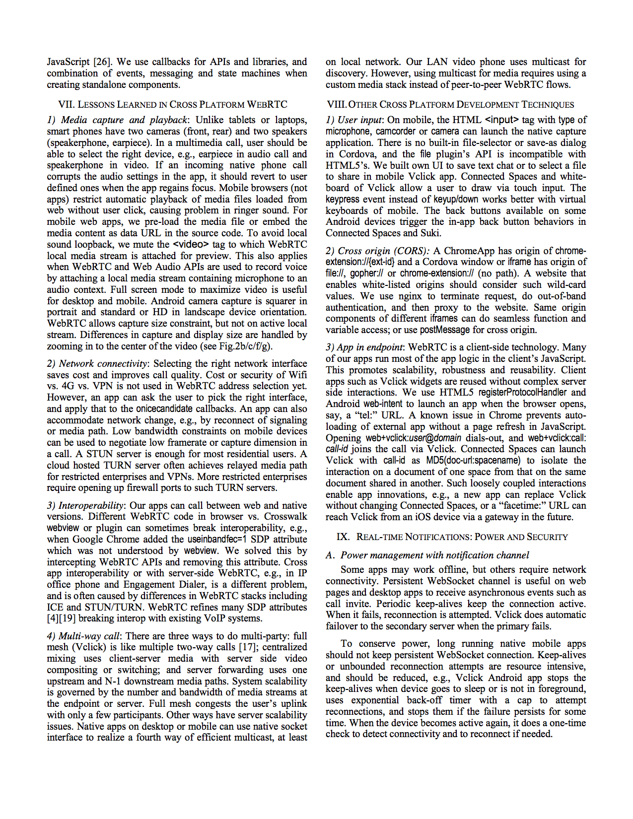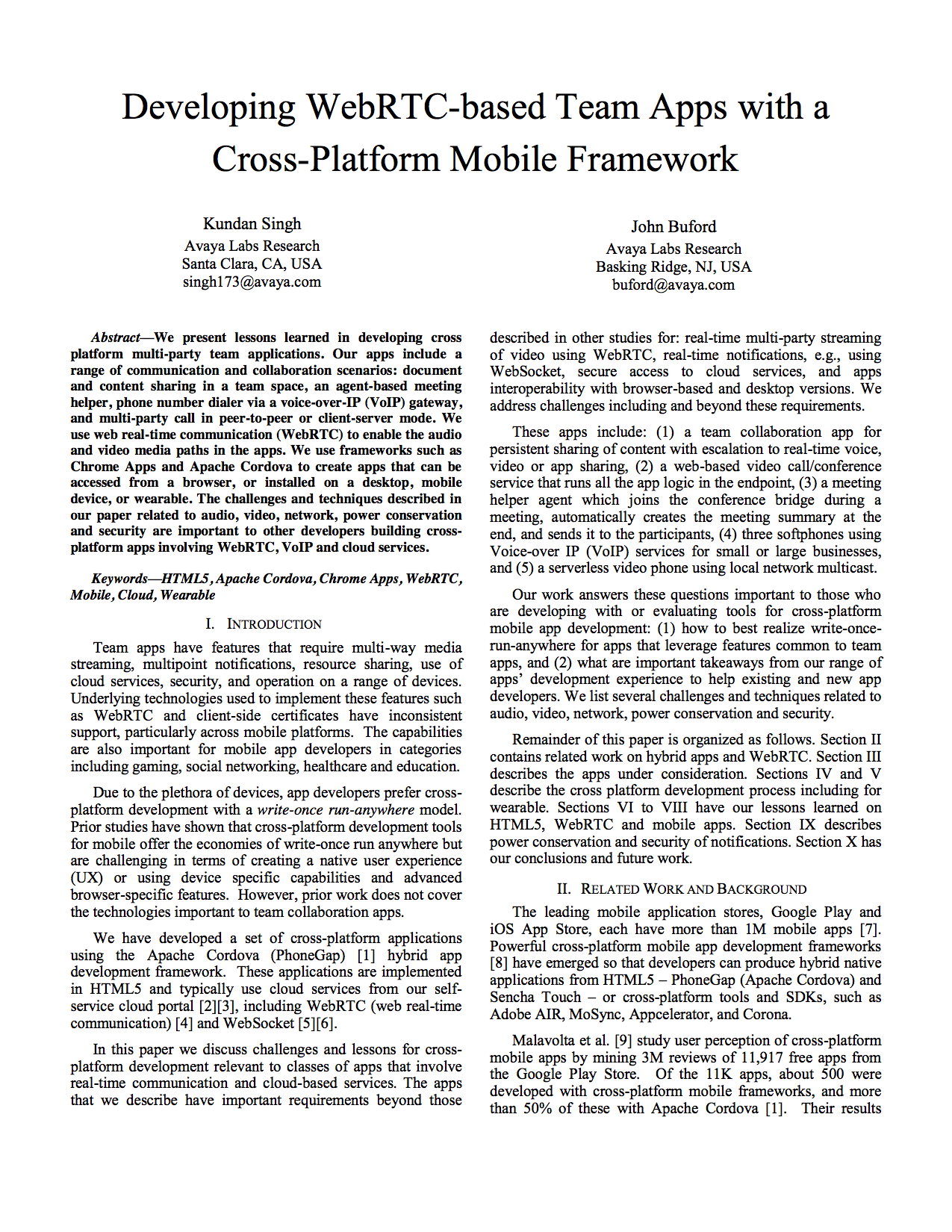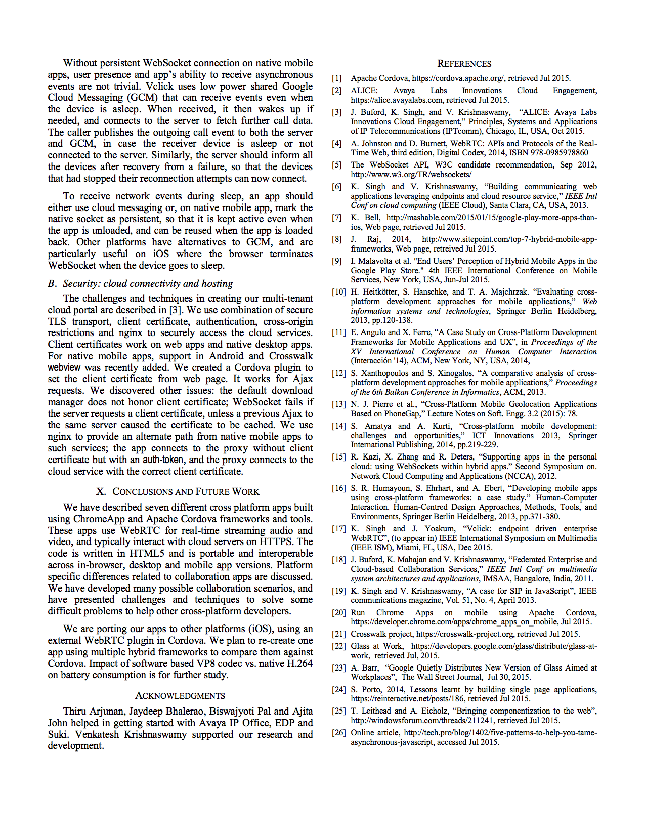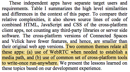 Paper title: Developing WebRTC-based team apps with a cross-platform mobile framework.