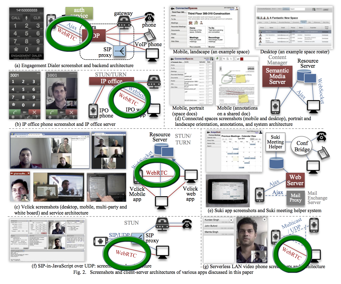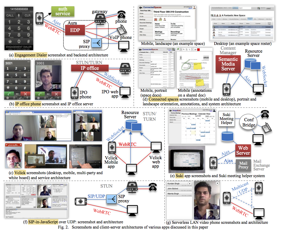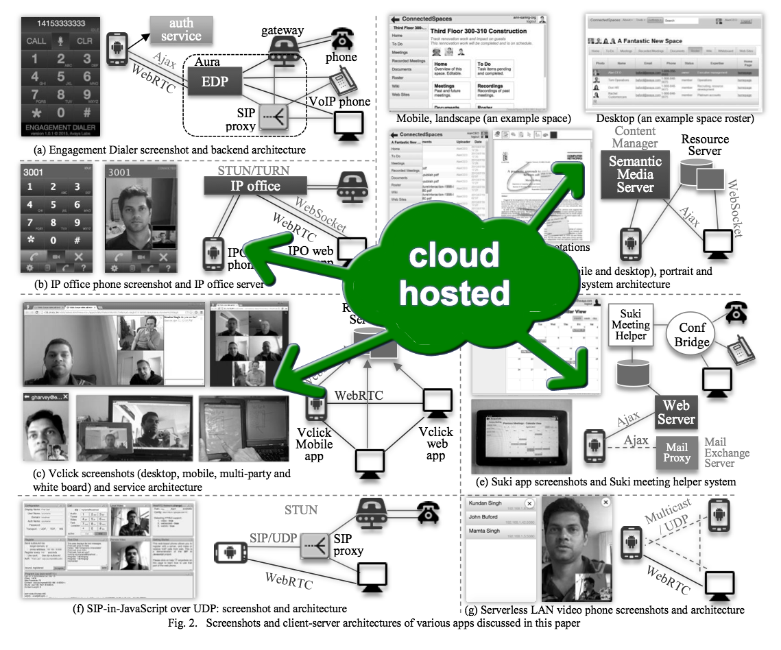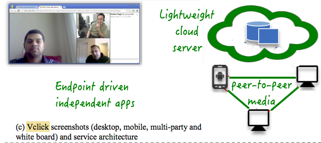 The third one called Vclick is basically as collection of many endpoint driven independent apps, that use a light weight server in the cloud, and run all the app logic in the endpoint. It has video call, conferencing, presence and various forms of collaboration such as screen sharing, shared notepad and whiteboard.