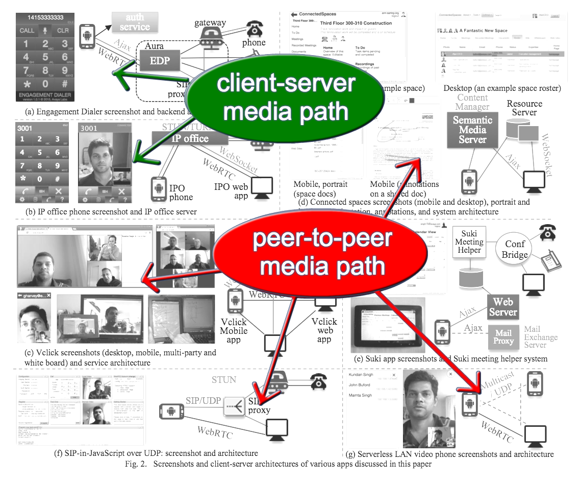 This shows the WebRTC media flows in various apps.