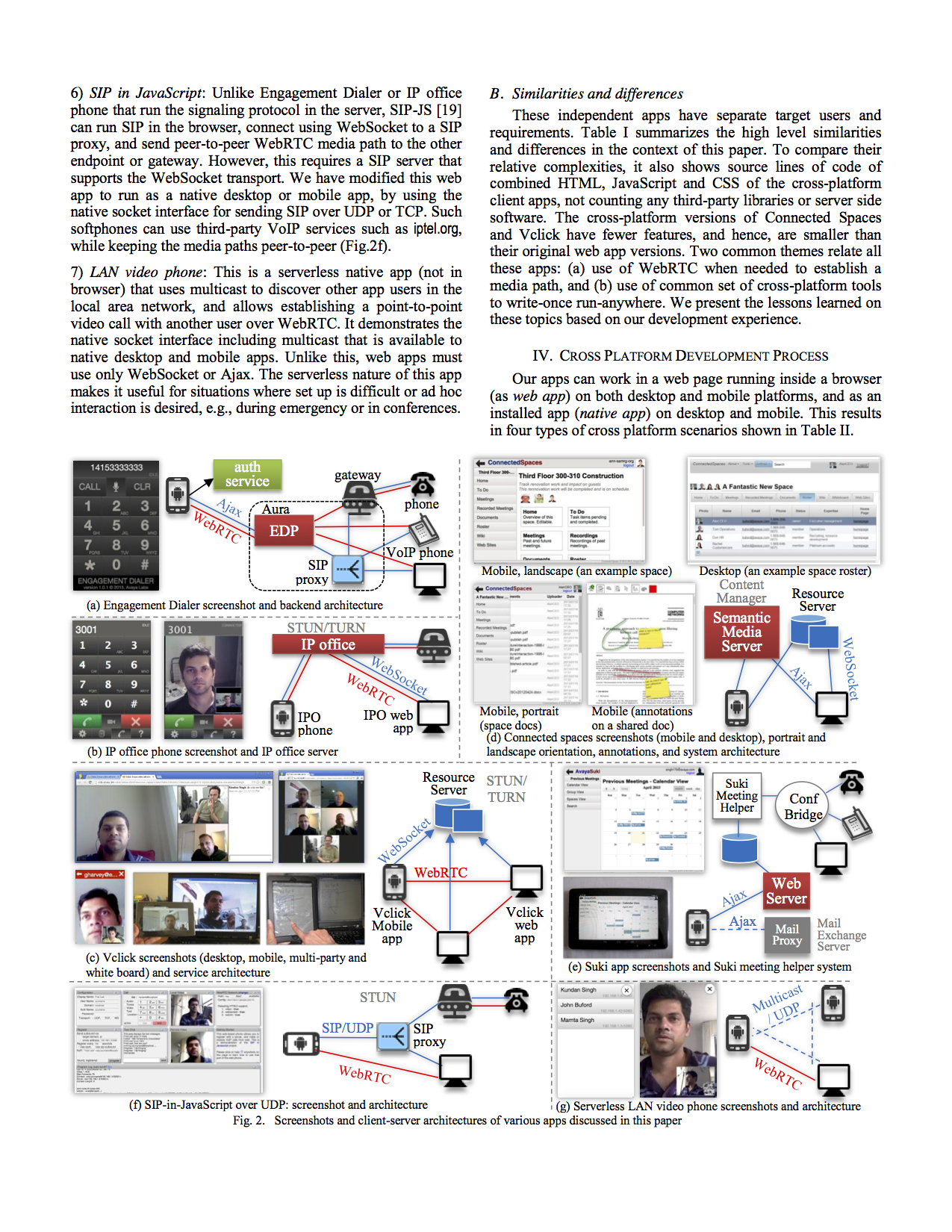 The paper only deals with the client apps, not the servers. Table I summarizes the similarities and differences among these apps.