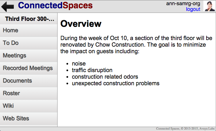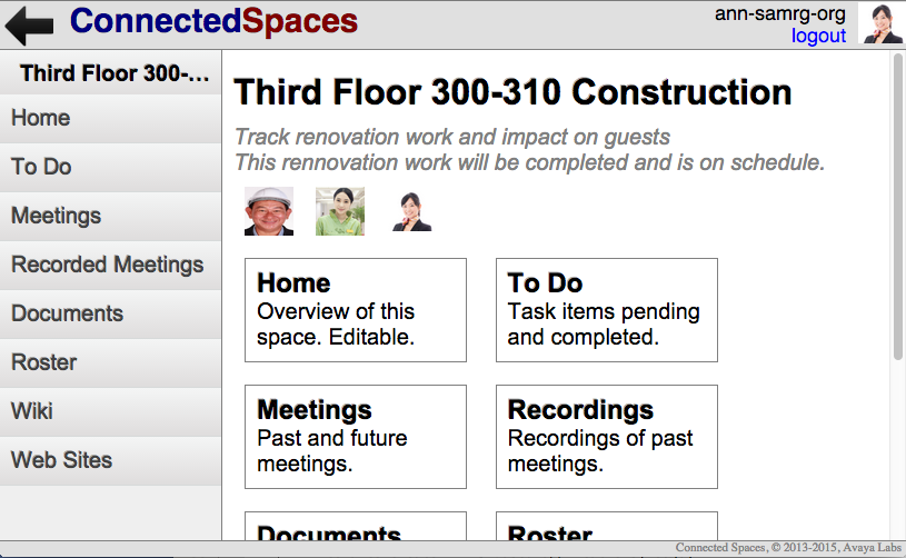 Connected spaces is a team collaboration system for persistent sharing of content such as documents, websites, meeting notes, etc., within organized team spaces.