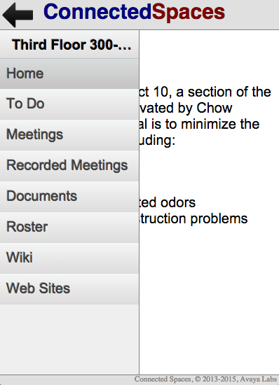 This is the connected spaces user interface in portrait and landscape mode, and layout automatically hides the menu in portrait mode.